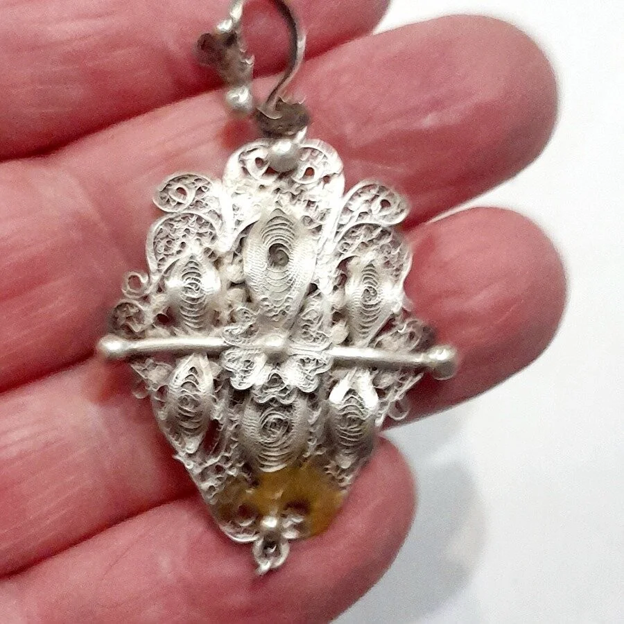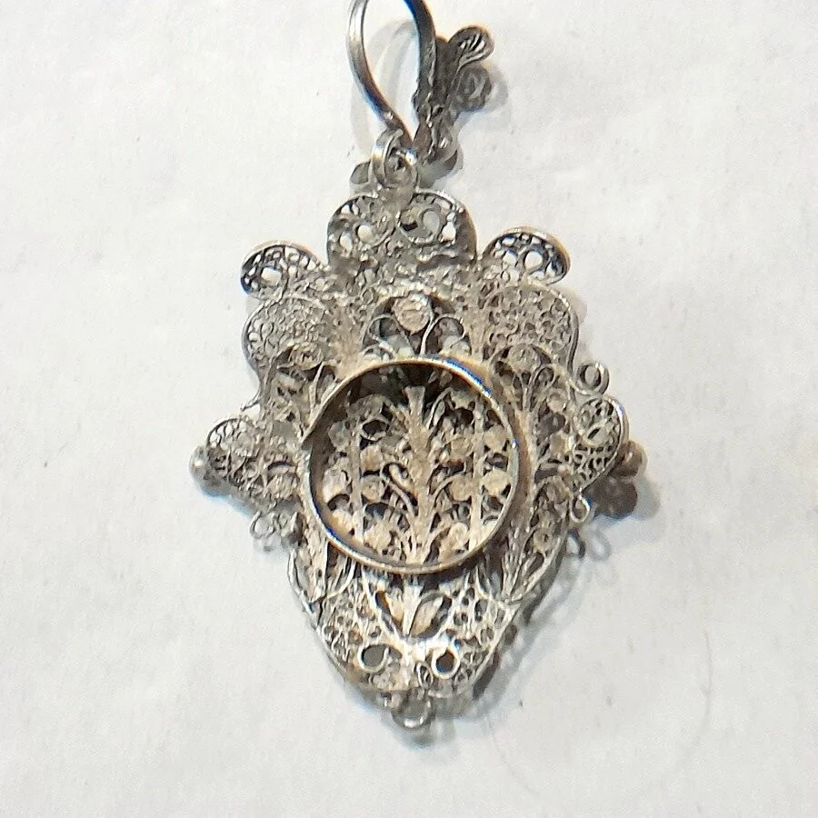 Antiguo Colgante Con Relicario De Plata Filigranada